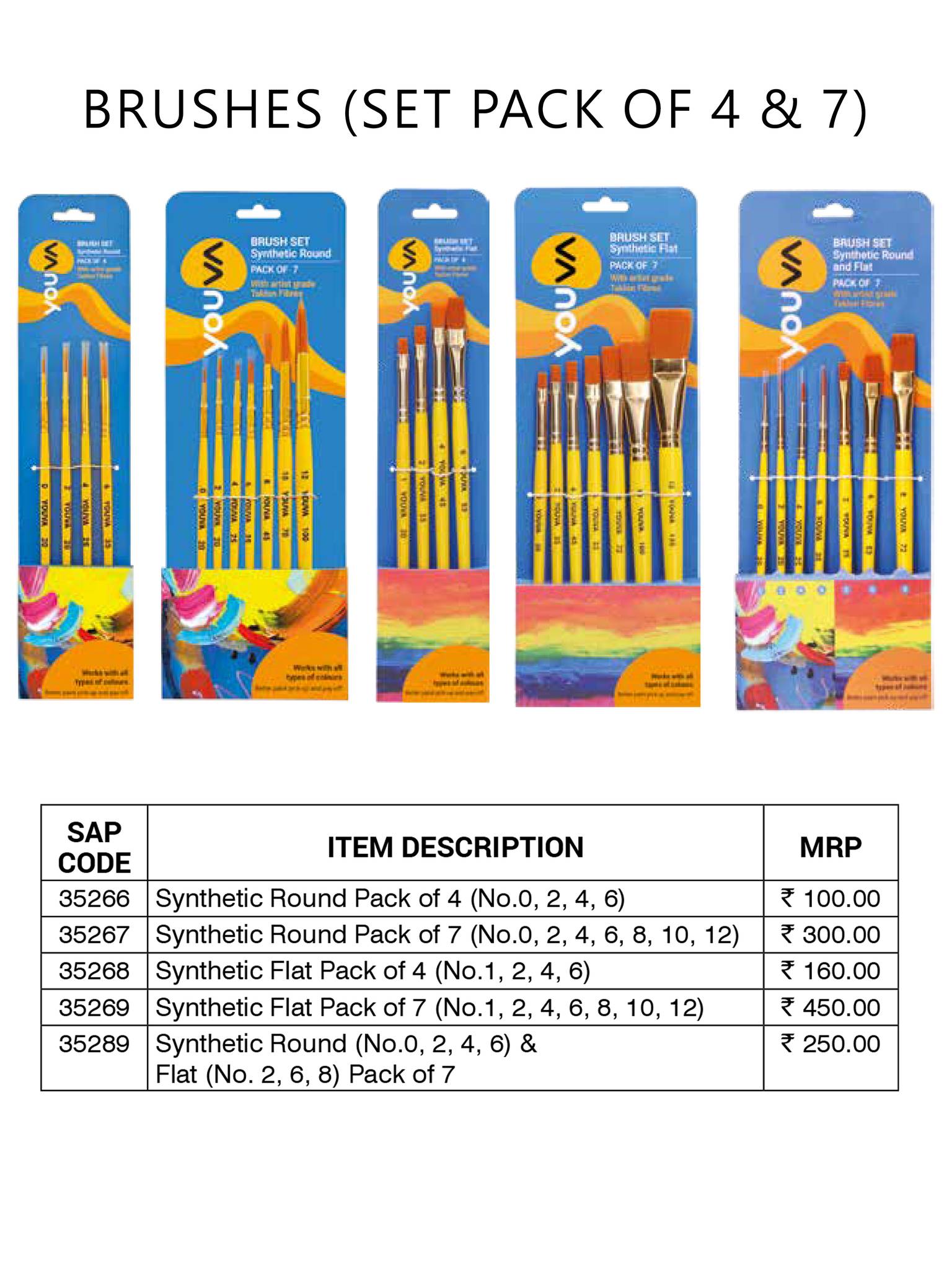 35289 Synthetic Round (No.0, 2, 4, 6) & Flat (No. 2, 6, 8) Pack of 7