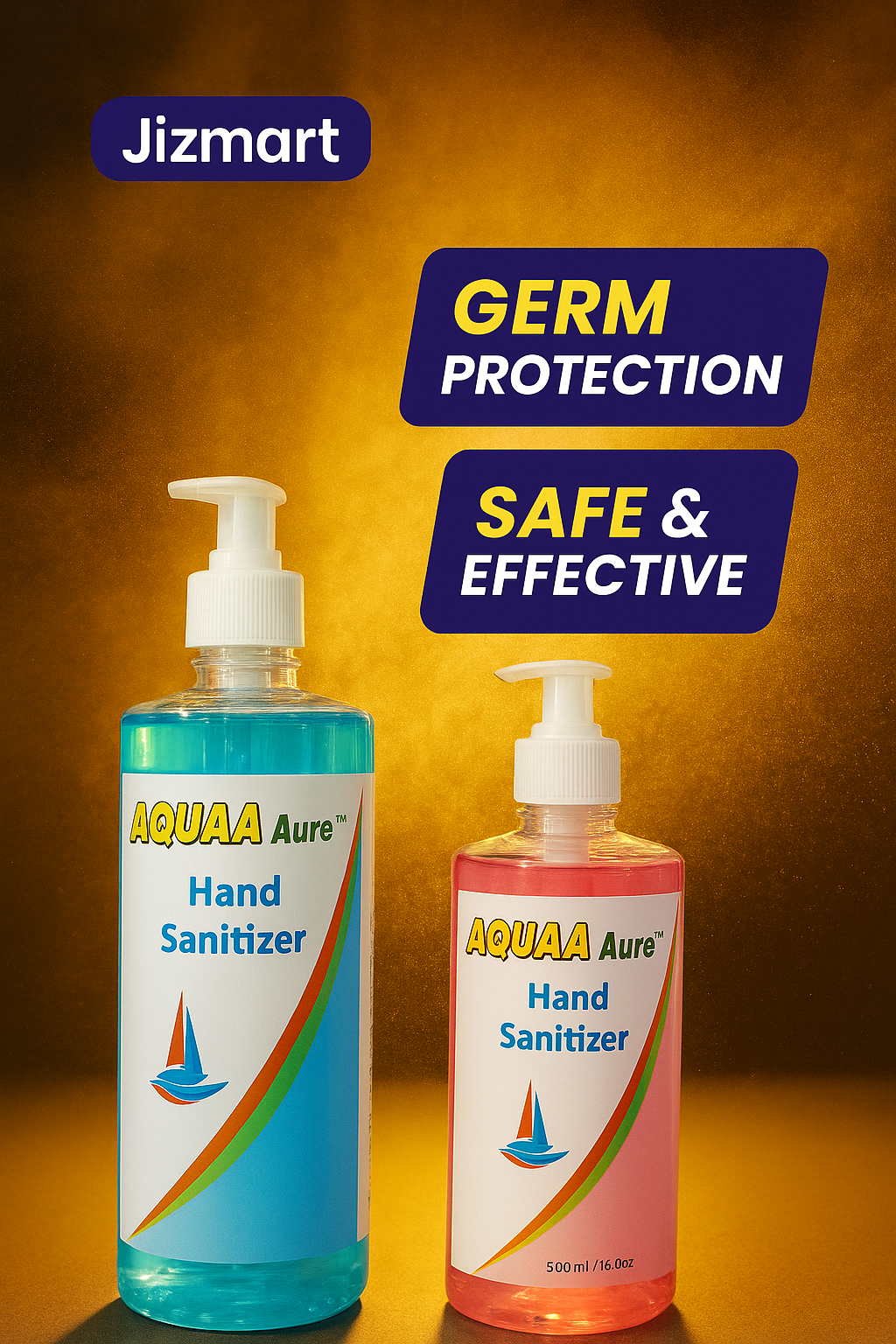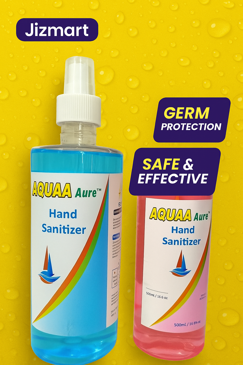 Keep your hands fresh, clean, and protected with AQUAA Aure Hand Sanitizer from Jizmart. Formulated with advanced germ-fighting ingredients, it effectively kills 99.9% of germs and bacteria without the need for soap or water. The quick-drying, non-sticky formula leaves your hands soft, smooth, and lightly scented — perfect for home, office, or travel use.