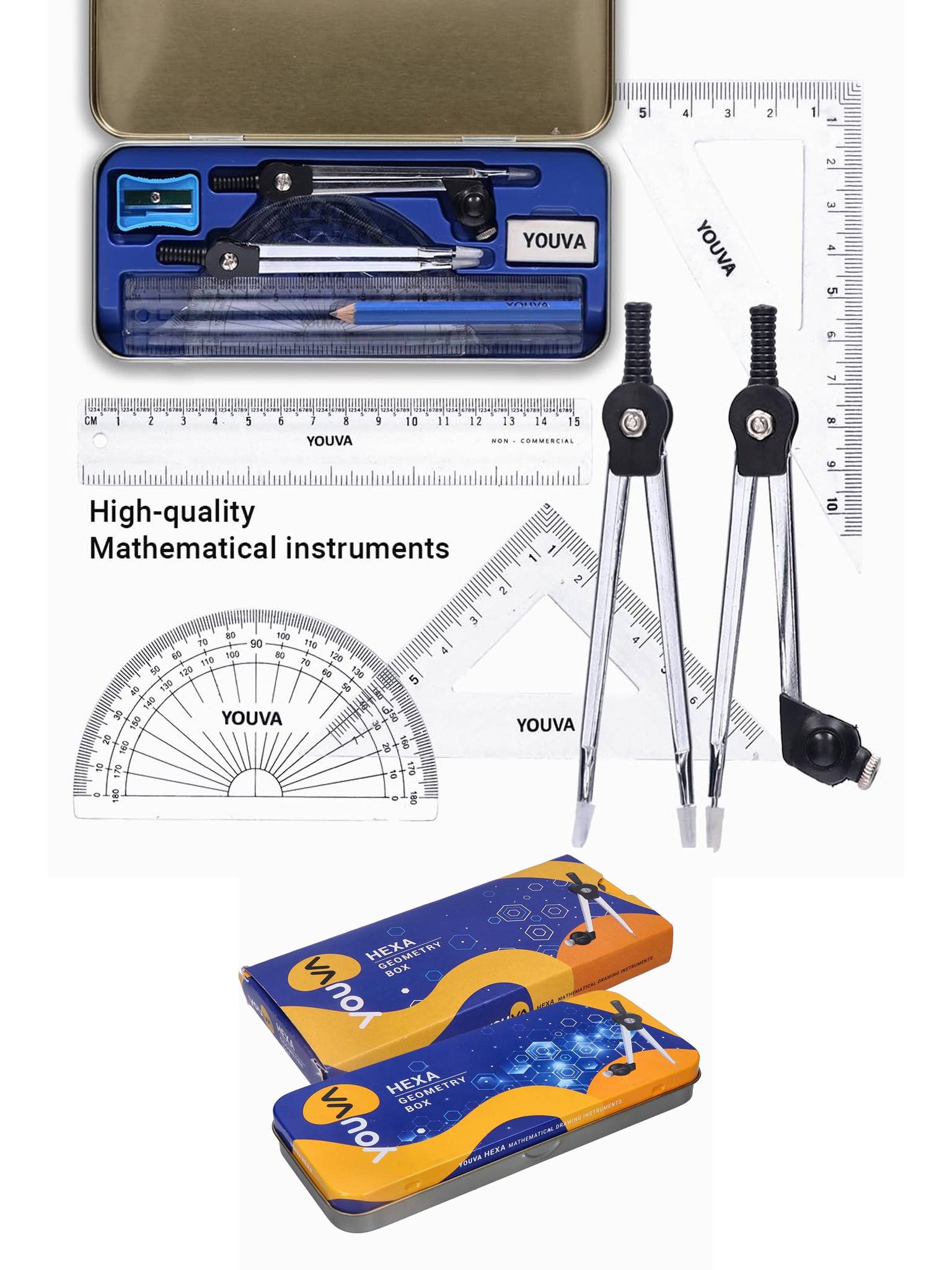 All measuring instruments have accurate, highlighted markings for measurement The divider and compass are corrosion-resistant and have ABS molded knobs with ridges for better grip The divider and compass both have a unique center point locking system which ensures perfect circles