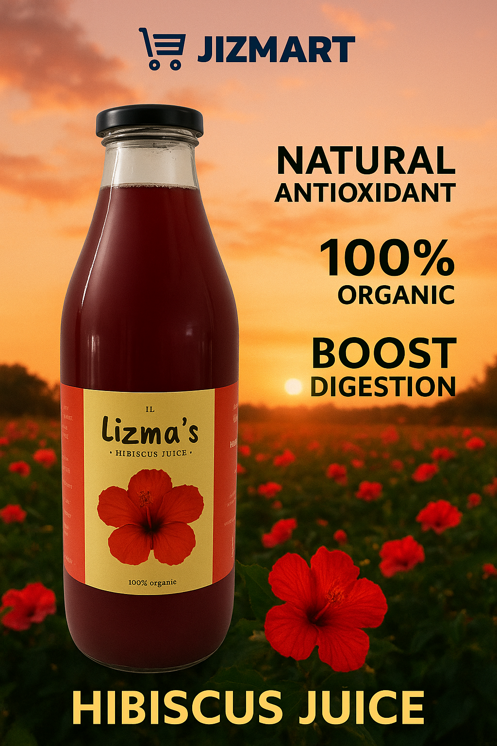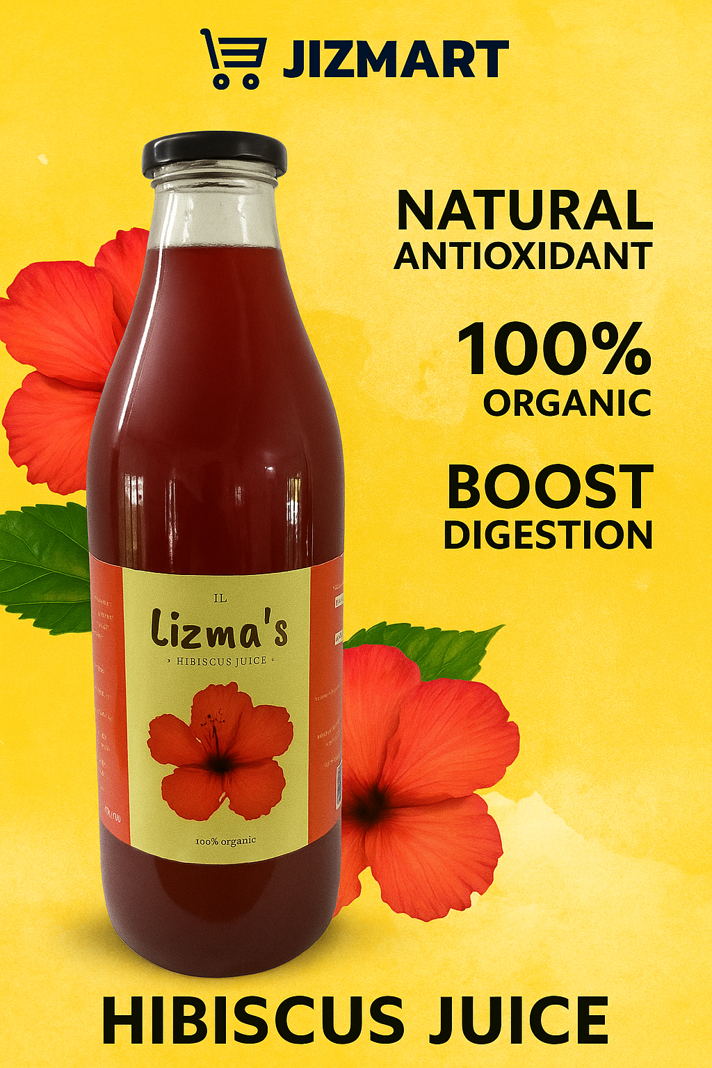 Experience the vibrant taste of nature with Lizma’s Hibiscus Juice, crafted from carefully selected organic hibiscus petals. This rich, ruby-red drink isn’t just refreshing—it’s packed with natural antioxidants that support heart health, boost immunity, and aid digestion.