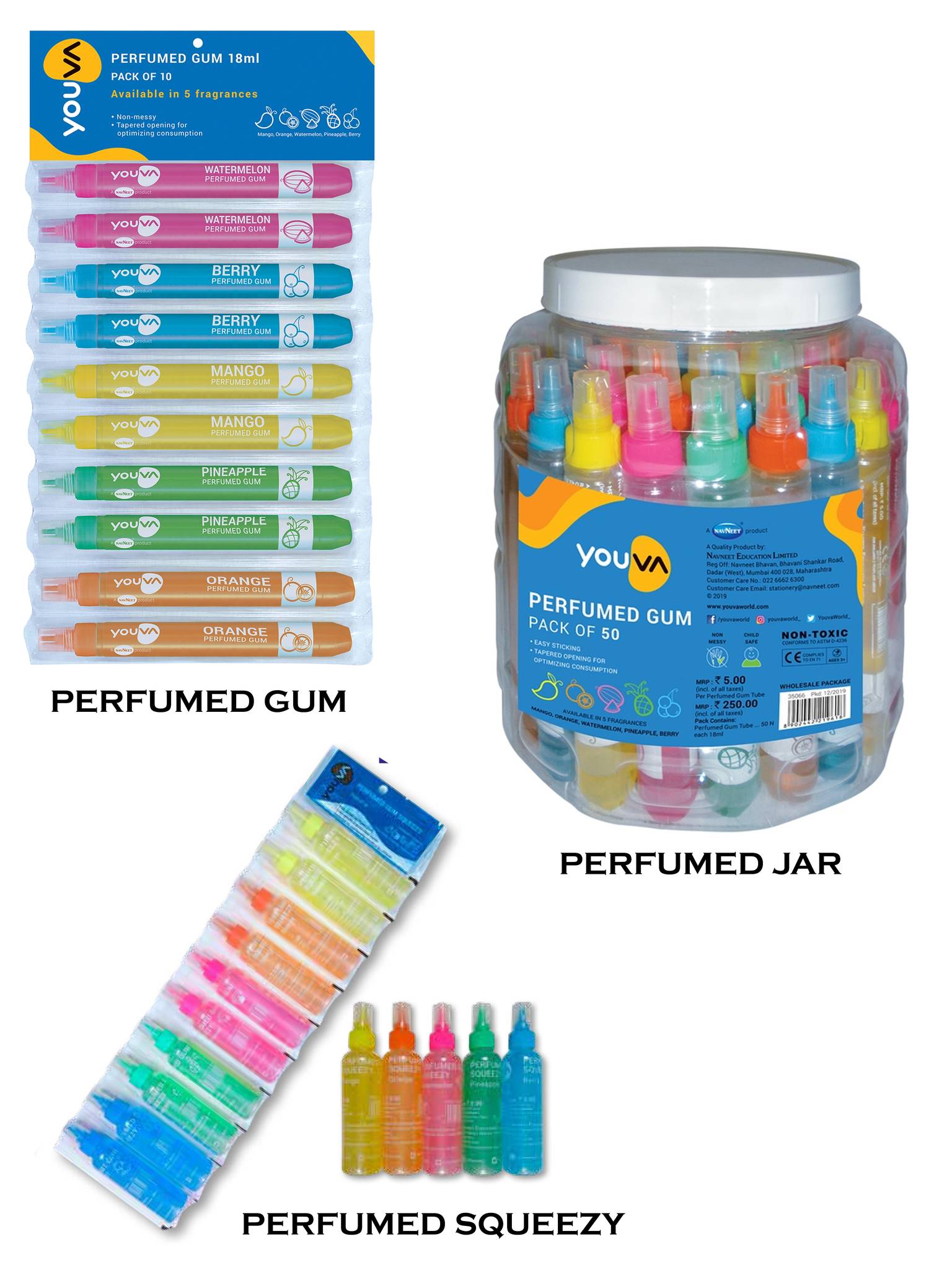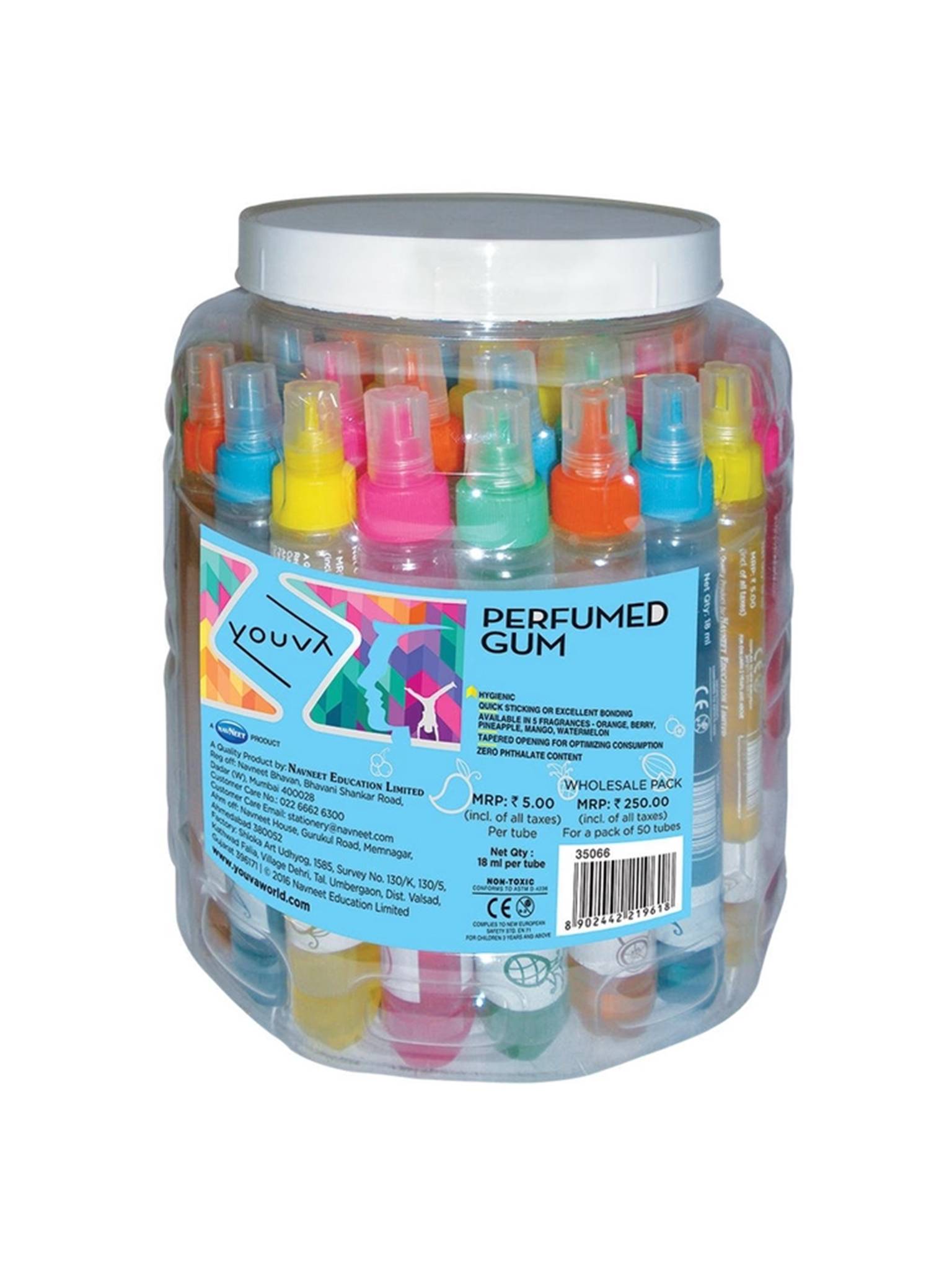 Best suited for paper craft and project work. Dries quickly & bonds paper easily. Designed for comfortable handling by children. Special nozzle for easy and better spreading. Available in 5 fragrances : Orange, Berry, Pineapple, Mango, Watermelon. Non Toxic - Phthalate free (harmless).