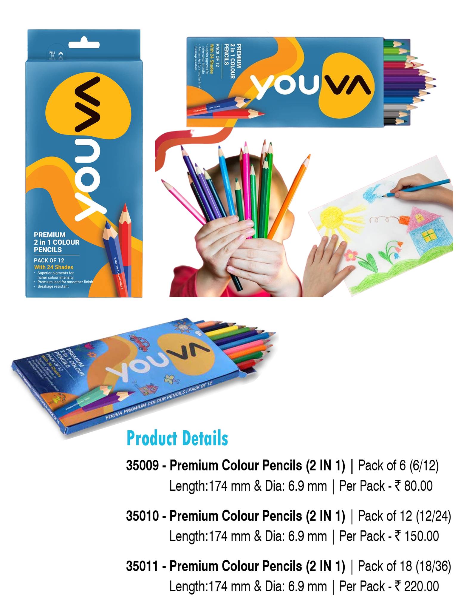 - Premium wood, Super bright lead and smooth colours.