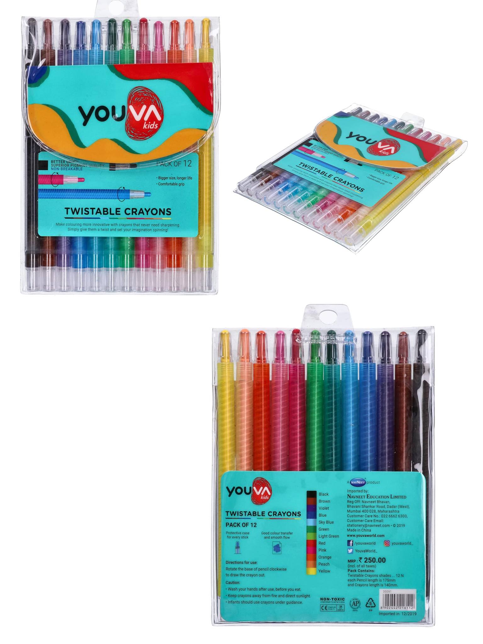 Features Unique and innovative concept. Attractive & user friendly packaging. Twist in or twist out the colours as per your requirement. Better grip & spreads smoothly & evenly without smudging. No breakage of crayons due to protective covering. Non Toxic - Phthalate free (harmless